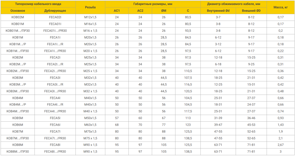 Стандартные взрывозащищенные кабельные вводы КОВ (FECA), метрическая резьба ГОСТ 24705 М