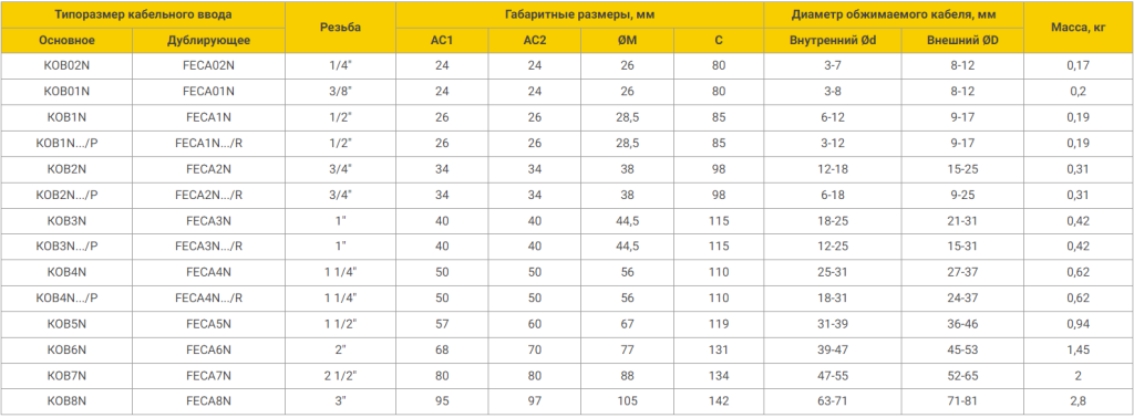 Стандартные взрывозащищенные кабельные вводы КОВ (FECA), резьба коническая дюймовая NPT