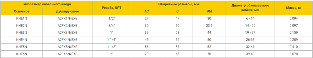 Взрывозащищенные кабельные вводы КНE, резьба коническая дюймовая NPT