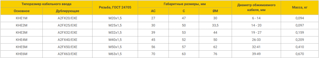 Взрывозащищенные кабельные вводы КНE, метрическая резьба ГОСТ 24705 Метрическая