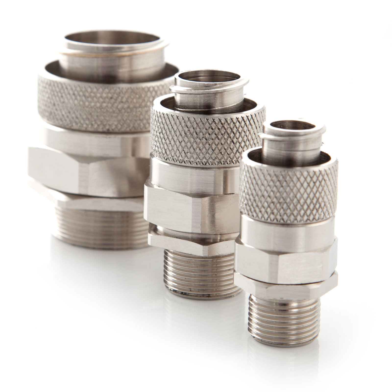 Кабельные ввода серии КНВМ с возможностью присоединения гибкого металлорукава обеспечивают взрывозащищенное уплотнение внешней оболочки кабеля и одновременно защиту от воздействия окружающей среды, исключая циркуляцию воздуха и осуществляя надежное закрепление металлорукава. Конструкция кабельного ввода серии КНВМ включает в себя адаптер для прямого присоединения металлорукава, что исключает необходимость его подбора.
