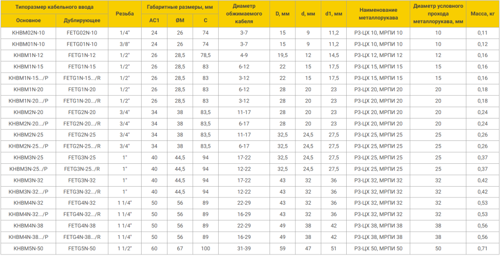Серия кабельных вводов КНВМ содержит типоразмеры со стандартным и увеличенным соотношением диаметра обжимаемого кабеля к диаметру условного прохода металлорукава. Увеличенная толщина стенок корпусов кабельных вводов производства ГОРЭЛТЕХ позволяет значительно повысить их прочность по сравнению с кабельными вводами других производителей. Взрывозащищенные кабельные вводы КНВМ полностью совместимы для использования с оборудованием, имеющим маркировку ExnR. Взрывозащищенные кабельные вводы КНВМ по конструкции обеспечивают разгрузку кабеля. Данные кабельные вводы обеспечивают защиту от выдергивания, не повреждая структуру оболочки кабеля и проводников, а так же не допускают их пережатия.