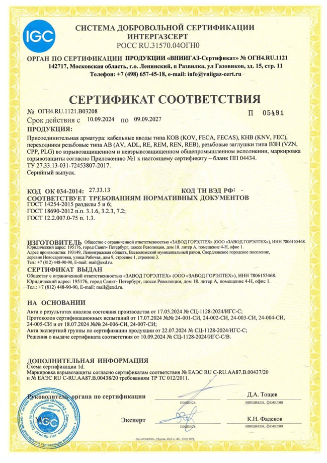 Купить Горэлтех АВ (ADL, RE, REM, REN, REB) взрывозащищенные переходники по низкой цене