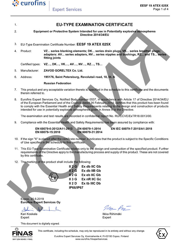 Горэлтех ВЗН (CPP, PLG) взрывозащищенные заглушки