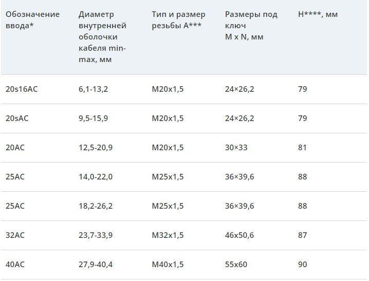 Таблица выбора кабельного ввода серии АК. Габаритные размеры.