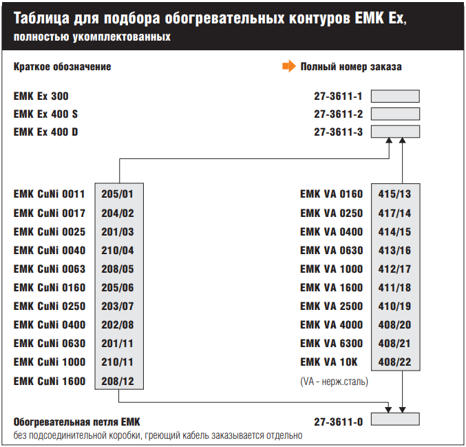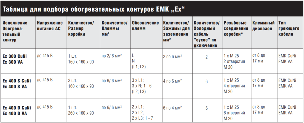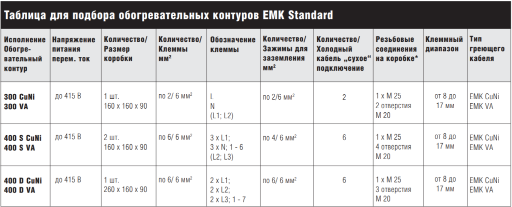 - Сборный комплект холодного кабеля и переходных муфт с греющим кабелем EMK (греющий кабель заказывается отдельно, см. Таблицу для подбора)