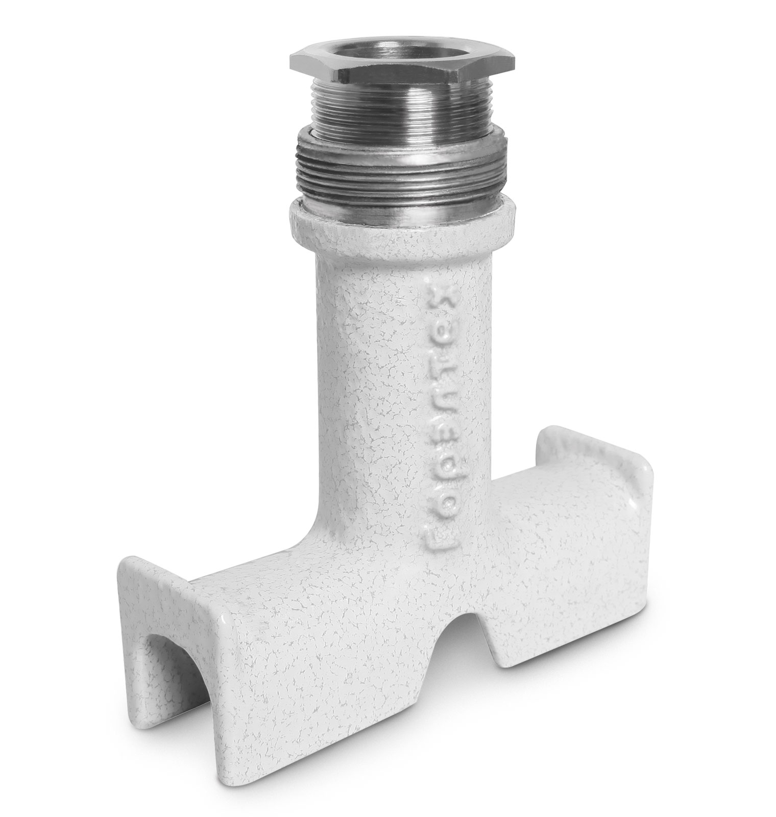 Скругленные края изделия исключают повреждения кабеля при монтаже. Изделие крепится к трубопроводу двумя металлическими хомутами, обеспечивающими целостность цепи заземления.