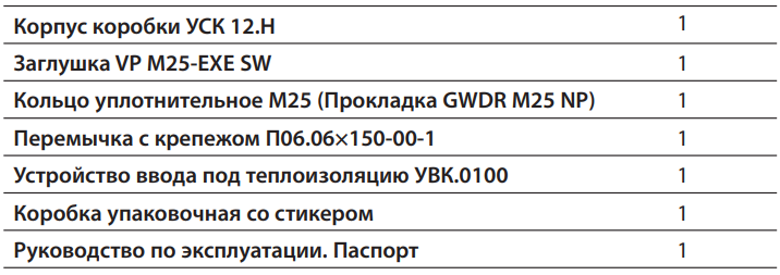 Комплект поставки соединительной коробки УСК 12.Н: