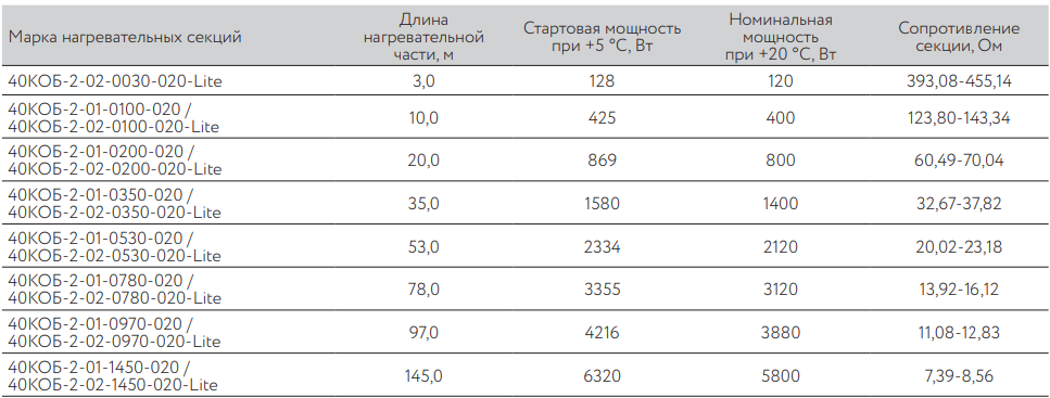 Купить 40КОБ-2-02-0970-020-Lite резистивная нагревательная секция для обогрева бетона по низкой цене