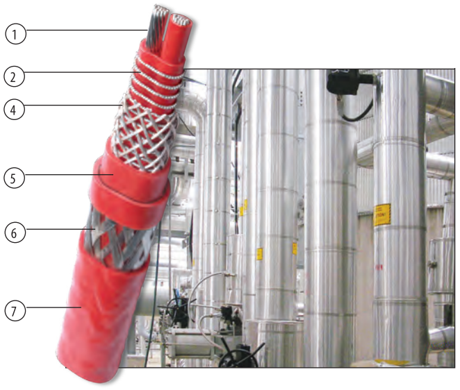 Функцию ограничения мощности кабеля НРТ обеспечивает змеевиковый нагревательный элемент из сплава высокого удельного сопротивления. Параметр РТС (положительный температурный коэффициент) снижает выходную мощность кабеля при повышении температуры обогреваемого продукта и позволяет осуществлять монтаж кабеля внахлест. Благодаря композитной конструкции нагревательного элемента, подложке из волокна и дополнительной упругой прокладке из волокна нагревательный кабель НРТ отличается исключительной долговечностью и высокой производительностью.