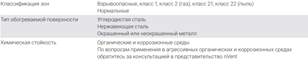 Область применения Raychem 15VPL2-CT