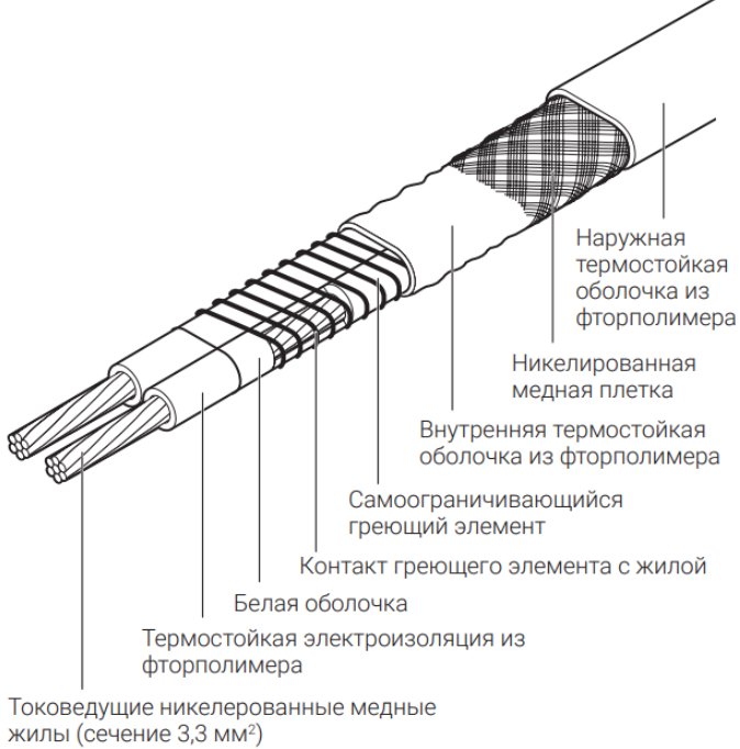 Конструкция греющего кабеля Raychem 15VPL2-CT