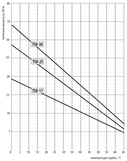 График мощности кабеля TSD-15F пищевой TSD-15F