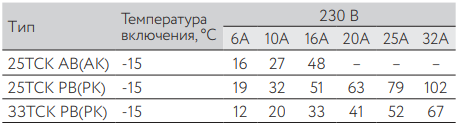 (или суммарная длина секции одной марки, подключаемых параллельно) в зависимости от типа автоматического выключателя питания: