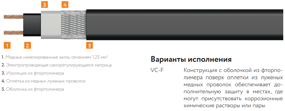 17VC2-F саморегулирующийся греющий кабель
