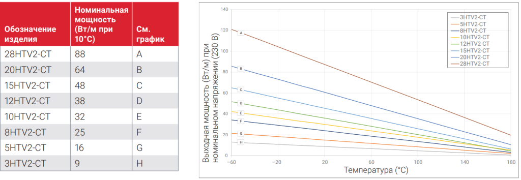 Мощность обогрева Raychem 8HTV2-CT-T3