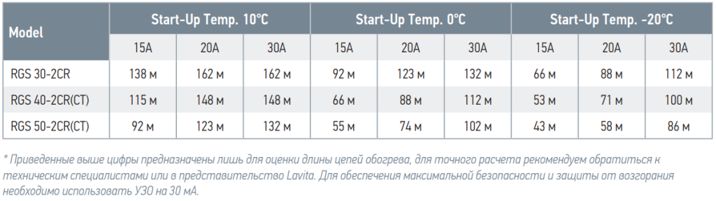 Максимальная длина цепи обогрева RGS 40-2CR