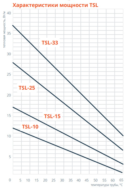 В греющих кабелях TSL нагревательным элементом выступает проводящая матрица, которая способна принимать различные величины сопротивления в зависимости от температуры окружающей среды. Кабели изготавливаются экструзией с равномерным охлаждением, из-за чего по всей длине кабеля мощность и сопротивление распределены равномерно.