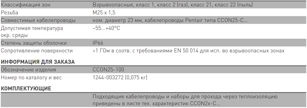 Набор для подсоединения кабелепровода к соединительной коробке с переходником для кабелепроводов для греющих кабелей BTV, QTVR, XTV, KTV и VPL.Комплектация CCON25-100