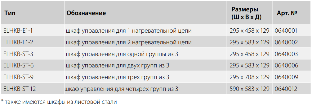 Стандартная конструкция ELHKV-ST позволяет подключать три группы нагрева через один внешний термостат. В случае с ELHKV-E1 каждая нагревательная цепь имеет отдельное питание и подключается через внешней термостат.