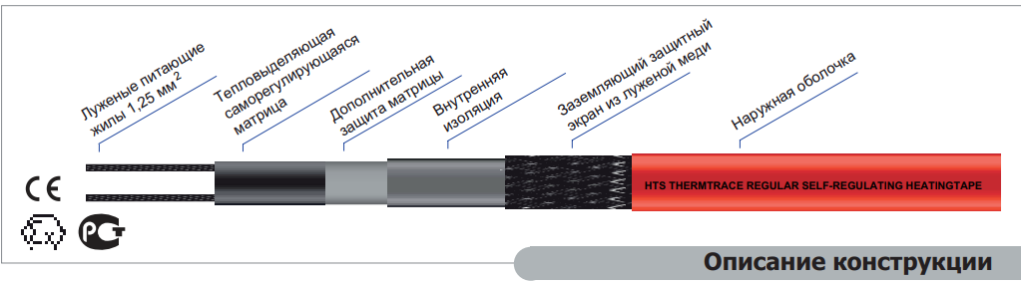 Саморегулирующиеся нагревательные кабели состоят из двух параллельных токопроводящих жил, заключенных в полупроводниковую саморегулирующуюся матрицу. Это означает что нагревательный кабель автоматически реагирует на изменения окружающих условий. С увеличением температуры синтетический материал матрицы расширяется, молекулярные силы и связи между углеродистыми частицами ослабевают, уменьшая проводимость. И наоборот, при уменьшении температуры проводимость увеличивается, так как увеличиваются связи между углеродистыми частицами.