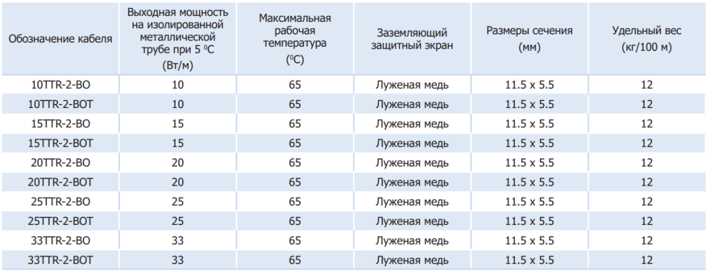 Таким образом мощность кабеля меняется при изменении внешних условий. Чем ниже температура окружающей среды, тем больше мощность кабеля. Саморегулирующиеся нагревательные кабели не перегреваются и не возгораются, даже если пересекаются между собой.