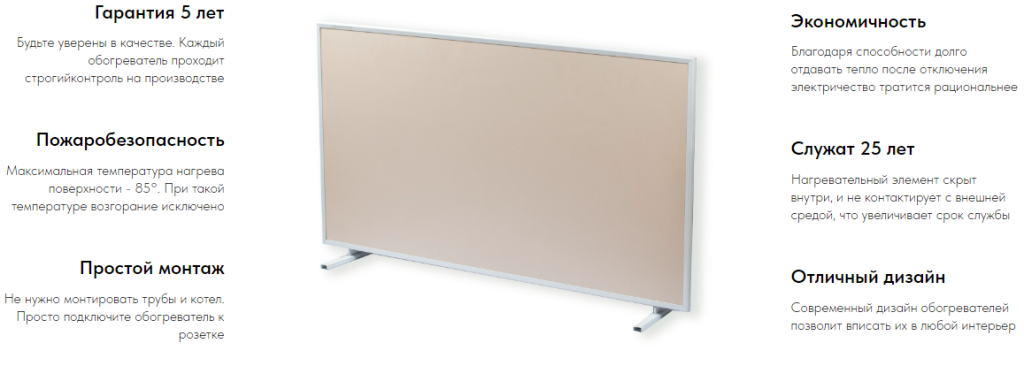 - Экономичность - потребление электроэнергии на 1 м2~ 0,05 кВт/час;