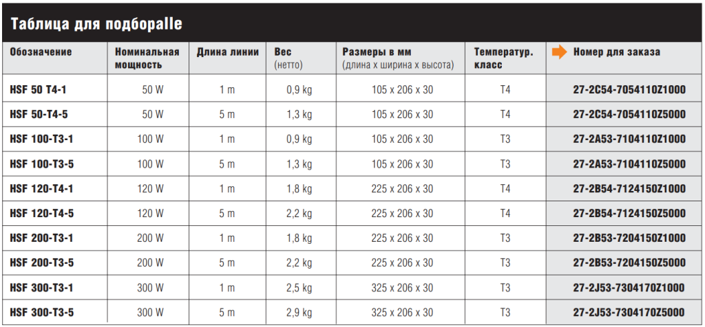 Нагревательные элементы PTC повышают свое электрическое сопротивление при повышающейся температуре. Высокое сопротивление означает низкую тепловую мощность. Тепловая мощность становится при высокой температуре такой незначительной, что предельная температура соответствующего температурного класса не может быть превышена. Кроме того эти нагревательные элементы управляют своим сопротивлением в зависимости от напряжения. Поэтому нагреватель HSF может использоваться в широком диапазоне рабочего напряжения.