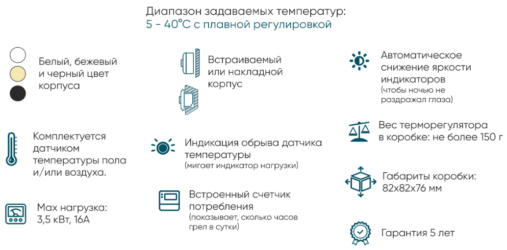 - Рекомендуется для работы с пленочными теплыми полами, а также с настенными и потолочными системами обогрева;